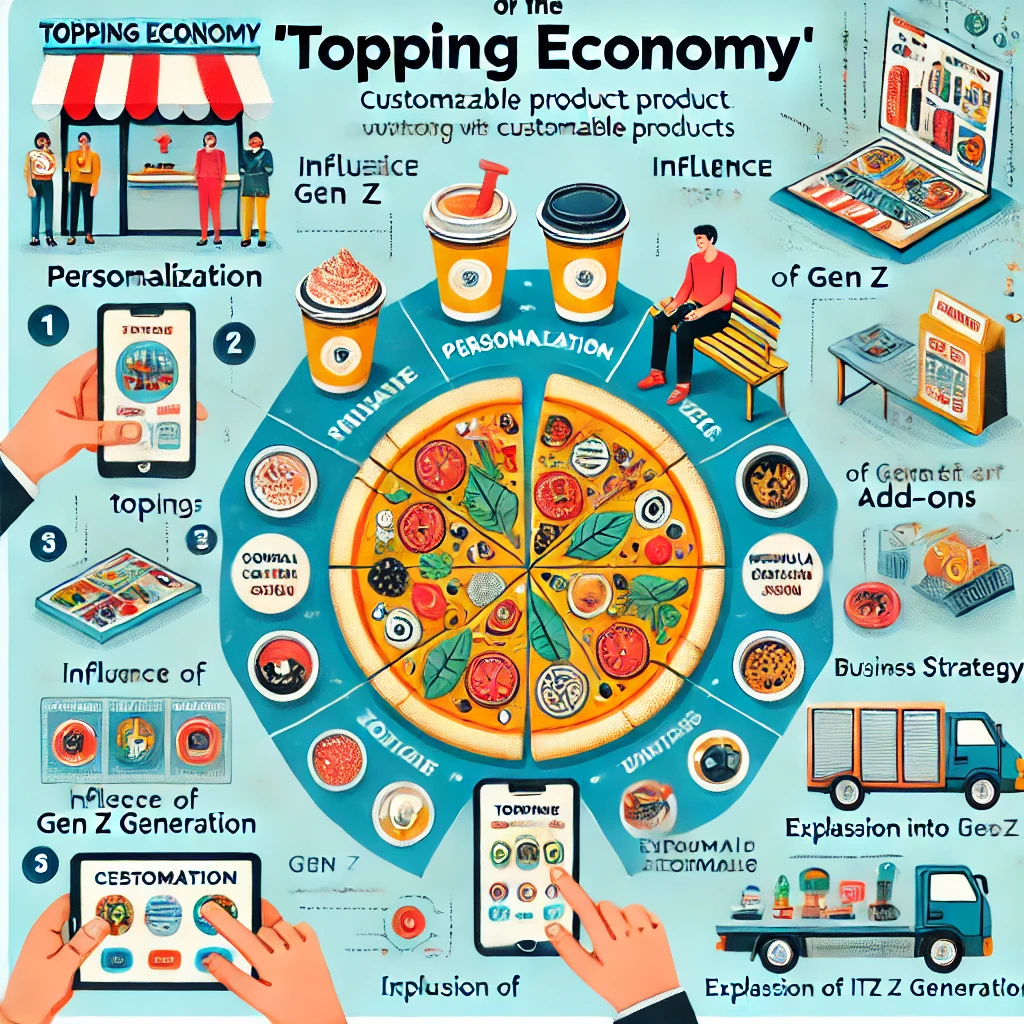 최근 소비자 중심의 경제 패턴이 더욱 강화되면서 ‘토핑경제(Topping Economy)’가 주목받고 있다. 토핑경제란 제품이나 서비스를 기본 형태로 제공하고, 소비자가 자신의 취향에 맞게 원하는 요소를 추가하여 맞춤형 경험을 완성하는 소비 트렌드를 의미한다. 이는 단순한 개인 맞춤형 소비를 넘어, 소비자가 직접 생산 과정에 개입하고 가치를 창출하는 새로운 경제 모델로 발전하고 있다.