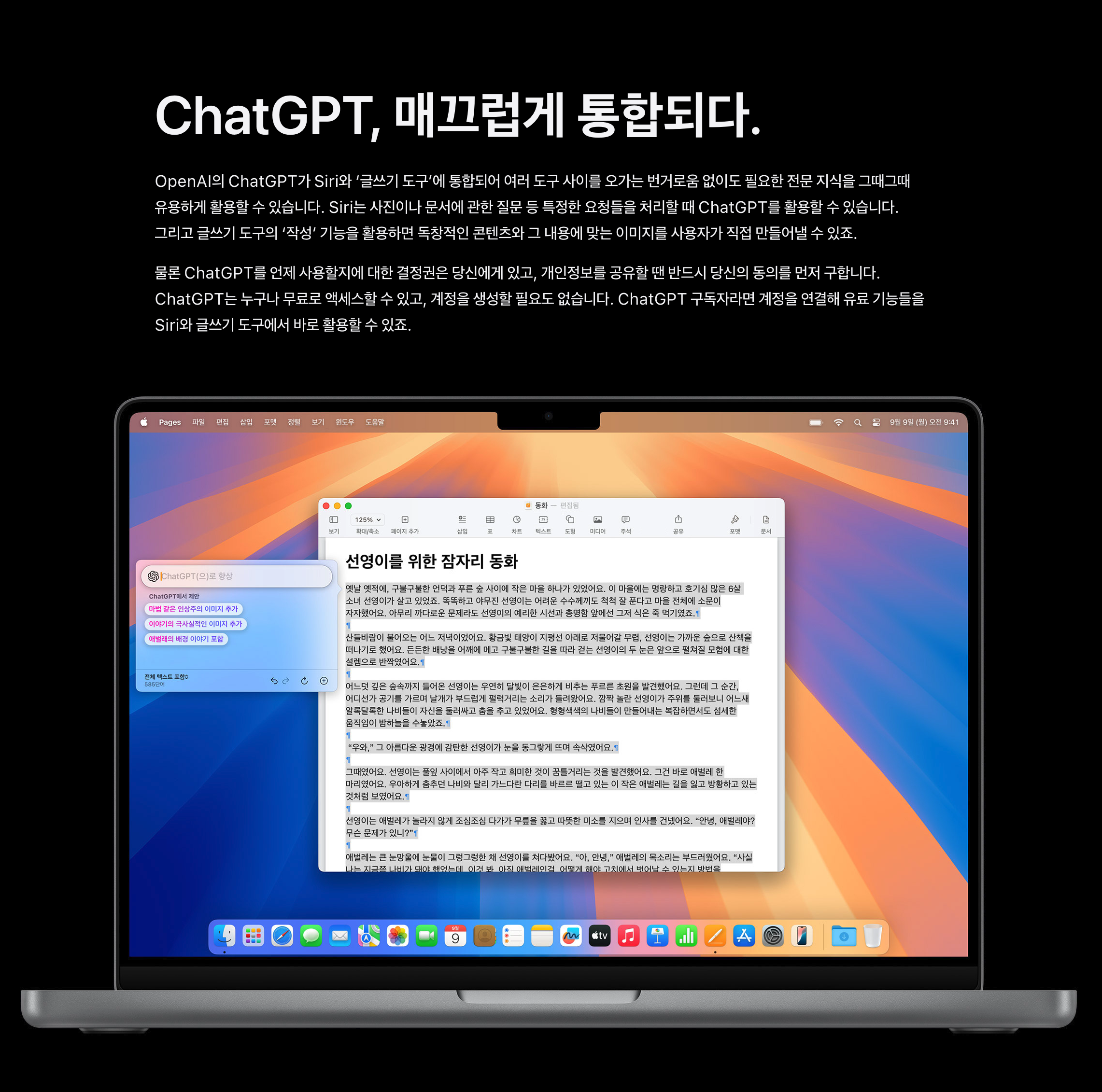 애플은 iOS 18, iPadOS 18, macOS Sequoia부터 OpenAI의 ChatGPT 기술을 애플 시스템에 통합합니다.