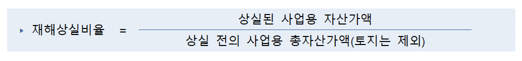 재해상실비율 = 상실된 사업용 자산가액 ÷ 상실 전의 총 사업용 자산가액